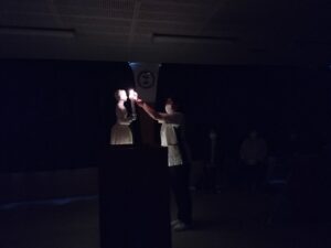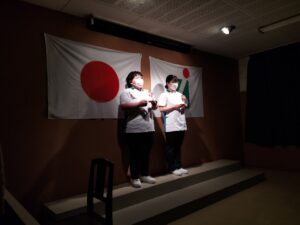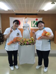ナイチンゲール像から頂いた「看護の灯」を掲げ『患者様とご家族の悩みを一緒に解決できる准看護師を目指します』と宣誓しました。
